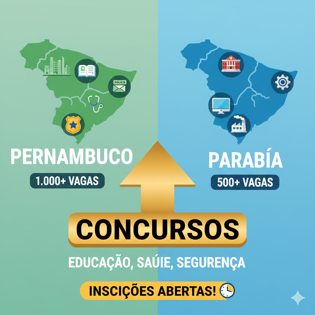 Diversos concursos públicos estão com inscrições abertas nos estados de Pernambuco e Paraíba, oferecendo oportunidades em várias áreas, como educação, segurança, saúde e administração. As vagas abrangem todos os níveis de escolaridade (fundamental, médio, técnico e superior), com inscrições que se estendem até novembro de 2025.